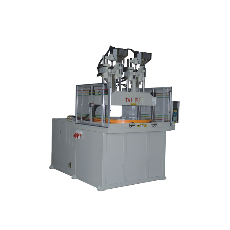 多工位元件轉(zhuǎn)臺機,該設(shè)備有兩組注射系統(tǒng),下模在180度、120度等一定角度旋轉(zhuǎn),可實現(xiàn)模具打標(biāo)過程的自動化。與普通立式雙色注塑機不同,該設(shè)備不僅可用于雙色注塑機,還可用作兩臺標(biāo)準(zhǔn)歷史注塑機或標(biāo)準(zhǔn)歷史雙站轉(zhuǎn)臺機,大大擴展了一臺機的多用途功能。