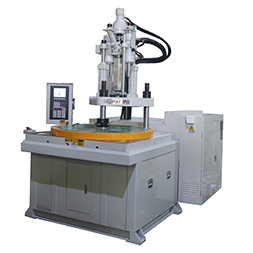 四站圓盤立式注塑機(jī)可以用在金屬放取件包膠成型較長產(chǎn)品,增加四個(gè)工位工作,與兩站圓盤立式注塑機(jī)同等周期。